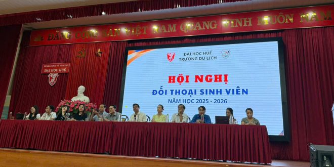 Xem tiếpChiều ngày 19/10/2025, Trường Du lịch – Đại học Huế đã tổ chức chương trình “Đối thoại giữa sinh viên năm học 2025-2026” nhằm tạo cầu nối để sinh viên gặp gỡ, trao đổi với Ban Giám hiệu và lãnh đạo các đơn vị, các Khoa và giúp lãnh đạo …