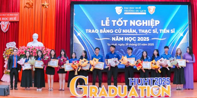 Xem tiếpNgày 29/7, Trường Du lịch – Đại học Huế tổ chức lễ tốt nghiệp và trao bằng cho các tân cử nhân, thạc sĩ và tiến sĩ năm 2025. Khen thưởng cho sinh viên đạt thành tích cao trong học tập và rèn luyện Năm học 2024-2025, mặc dù đối …