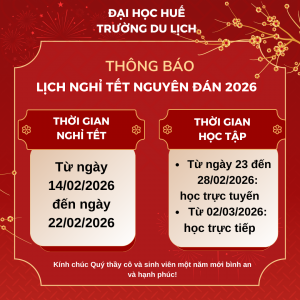 Trường Du lịch – Đại học Huế thông báo lịch nghỉ Tết Nguyên Đán năm 2026